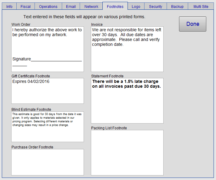 Use this section to enter or edit document footnotes, e.g. disclaimers or advertising, to appear on the print form of these documents:
