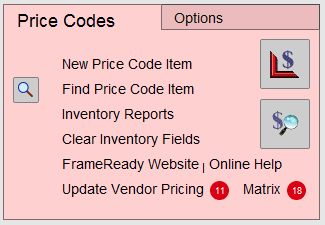 If you are using the Manual Update System, then use the Moulding and Matboard/Mounting/Glazing buttons.