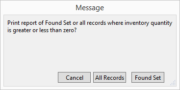 Select printing of All Records or Found Set (finds records with a negative or positive value in the Qty field.)